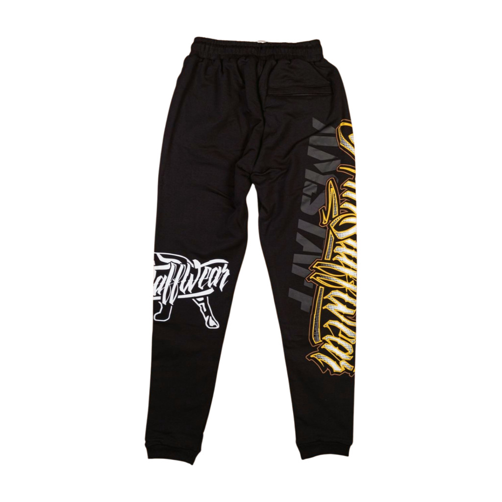 Az Amstaff férfi melegítő nadrág tökéletes választás azok számára, akik a streetwear stílust és a sportos kényelmet szeretnék ötvözni. A fekete alapon megjelenő kontrasztos grafikai elemek, az Amstaff logó és a kutyás motívum modern, dinamikus megjelenést biztosítanak.