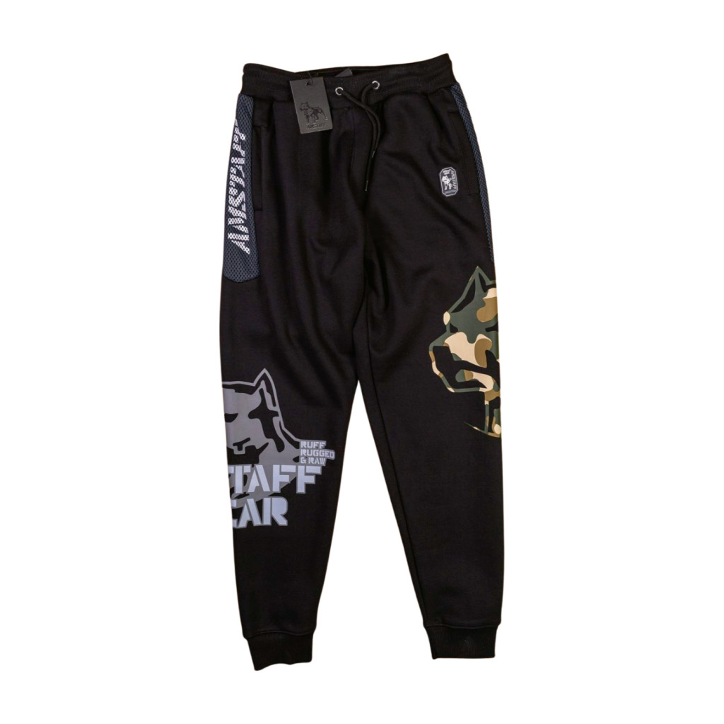 Az Amstaff férfi melegítő nadrág ideális választás azok számára, akik a sportos streetwear stílust és az egyedi megjelenést keresik. A fekete alapon megjelenő terepmintás grafikai elemek és a karakteres Amstaff logó modern, dinamikus dizájnt biztosítanak.